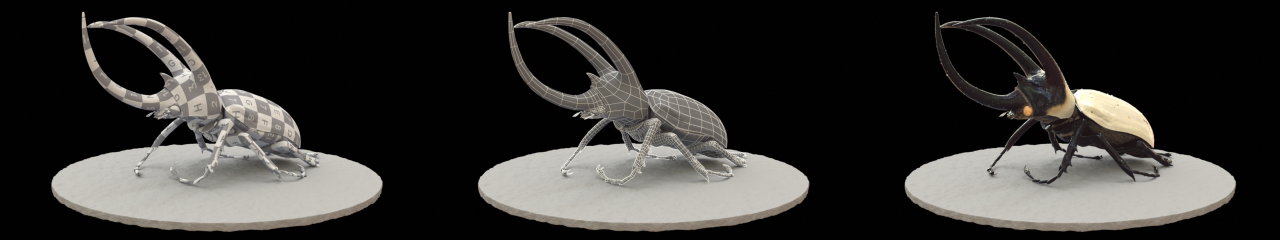 MR: We bought two rhinoceros beetle, one male and one female. I studied them and captured their movements. Other video references and a rhinoceros beetle specimen were very helpful too.