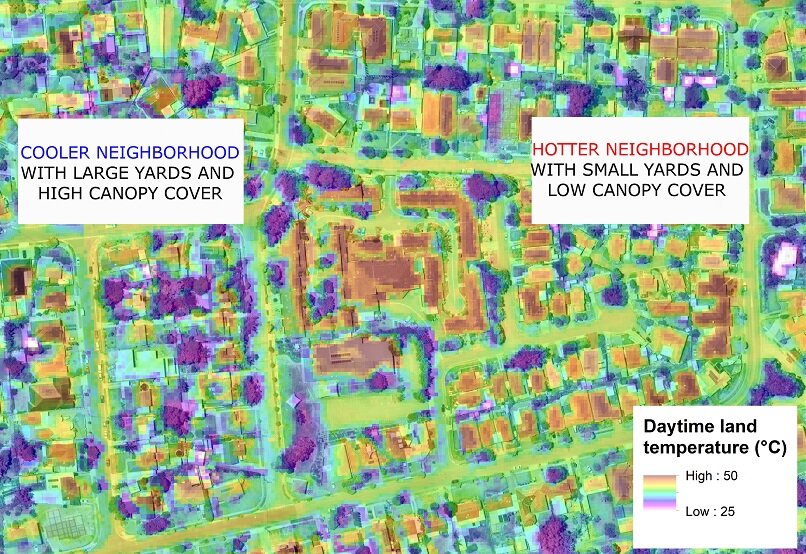 The researchers estimate that increasing green foliage in residential gardens could reduce local heat by several degrees Celsius.