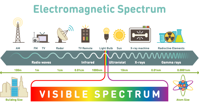 Photon wavelengths range from extremely small, at a trillionth of a metre, to huge, at tens of metres. This range encapsulates nearly everything that we experience, like feeling warm, receiving a phone call, microwaving left-overs, and just optically understanding the world. It’s the full spectrum.
