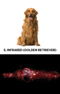 We’ve extended this analogy to the entire spectrum (below) where each photon gets its own canine representative.