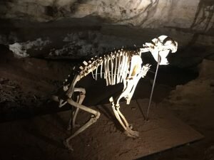 The staff provide guided tours to showcase fossil remains and crystalline deposits in the caves and reconstructed megafauna specimens in a visitor’s centre. Greeting tourists at the centre is a reconstructed skeleton of the so-called marsupial lion, Thylacoleo carnifex, wrestling with a giant snake, Wonambi naracoortensis. Despite its name, it’s not related to lions; it comes from the order Diprotodontia, which includes wombats, kangaroos and koalas. It was Australia’s largest known carnivorous mammal and was an integral constituent of the megafauna roaming the Naracoorte region.