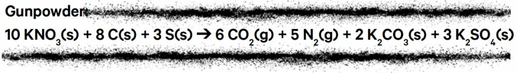 The ingredients are simple, but the chemical reactions taking place are very complex. Below is a simplified, balanced equation for the combustion of gunpowder.