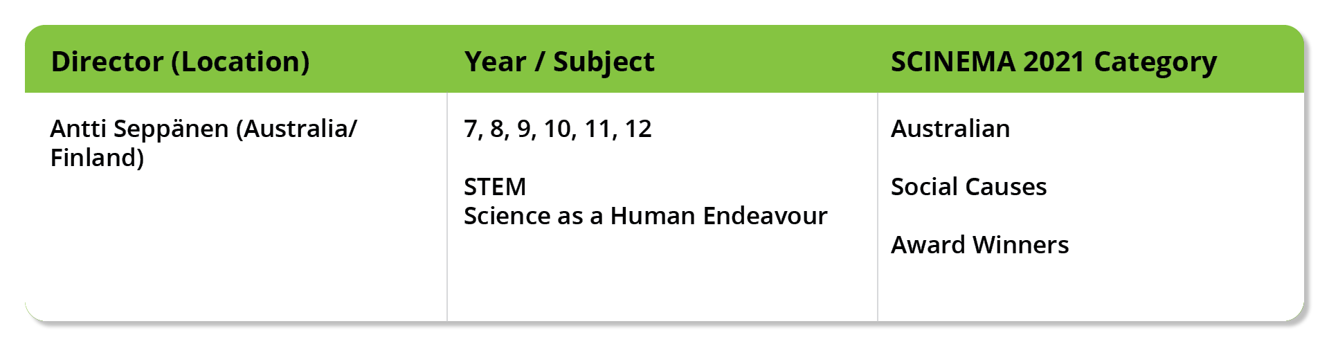 This film was submitted to the SCINEMA 2021 International Science Film Festival and was selected to feature in our Australian, Social Causes and School categories. It also achieved the Indigenous / First Nations Award at the festival. The filmmaker has kindly allowed us to continue to show the film beyond the festival. Watch it below and download the accompanying educational resource for fun activities to use with your students.