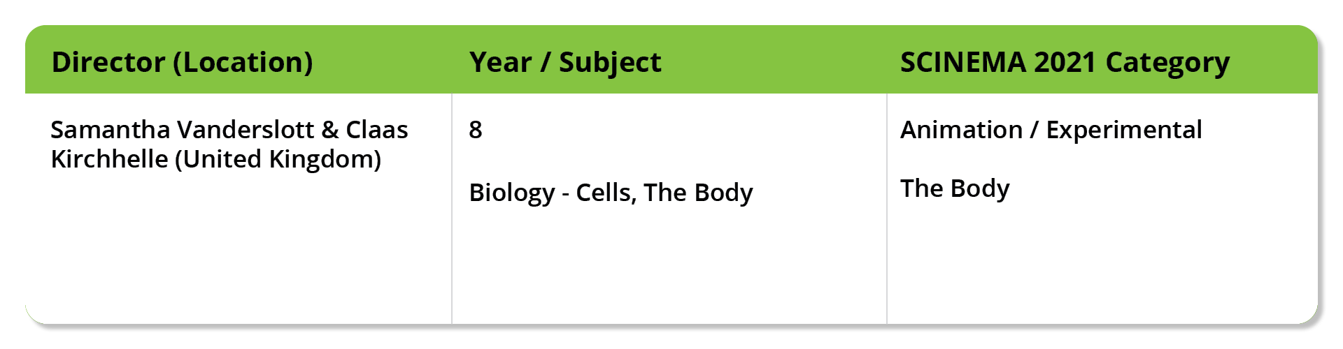 Both Alice in Typhoidland and The Tragic Tale of Mary Mallon were submitted to the SCINEMA 2021 International Science Film Festival and were selected to feature in our Animation, the Body and School categories. The filmmaker has kindly allowed us to continue to show these films beyond the festival. Watch it below and download the accompanying educational resource for fun activities to use with your students.