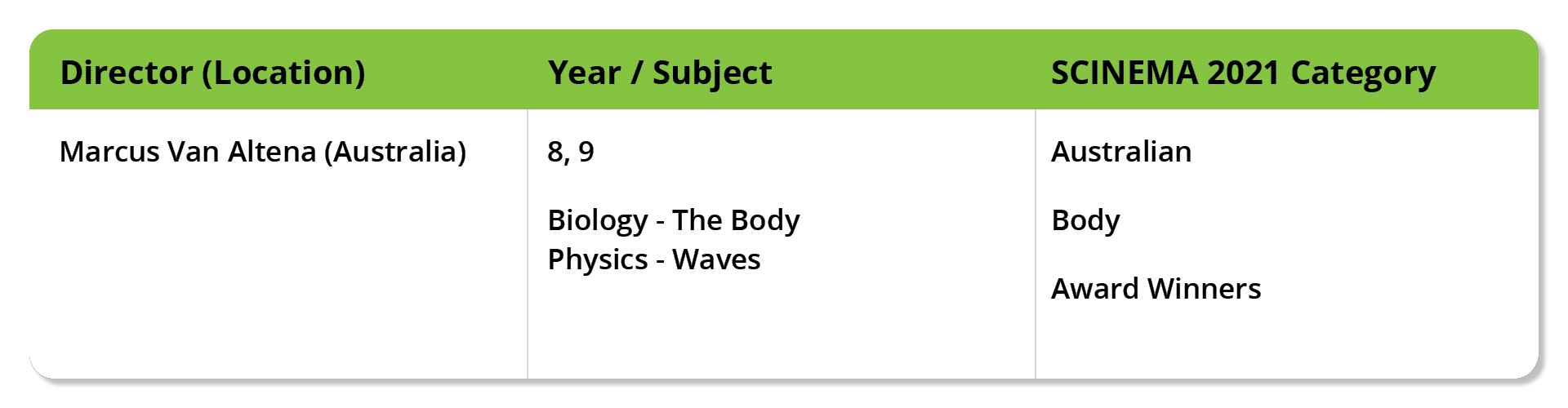 This film was submitted to the SCINEMA 2021 International Science Film Festival and was selected to feature in our Australian, Body and School categories. The filmmaker has kindly allowed us to continue to show the film beyond the festival. Watch it below and download the accompanying educational resource for fun activities to use with your students.