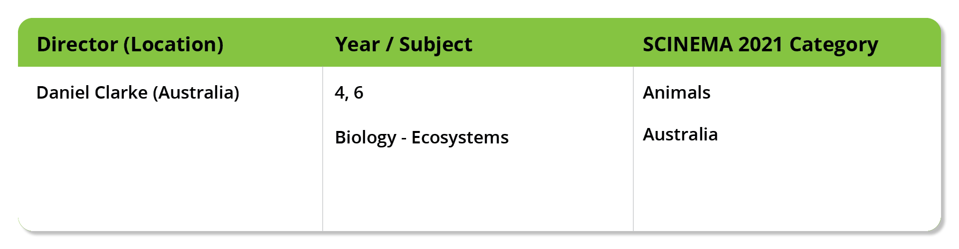 This film was submitted to the SCINEMA 2021 International Science Film Festival and was selected to feature in our Australian, Animals and School categories. The filmmaker has kindly allowed us to continue to show the film beyond the festival. Watch it below and download the accompanying educational resource for fun activities to use with your students.