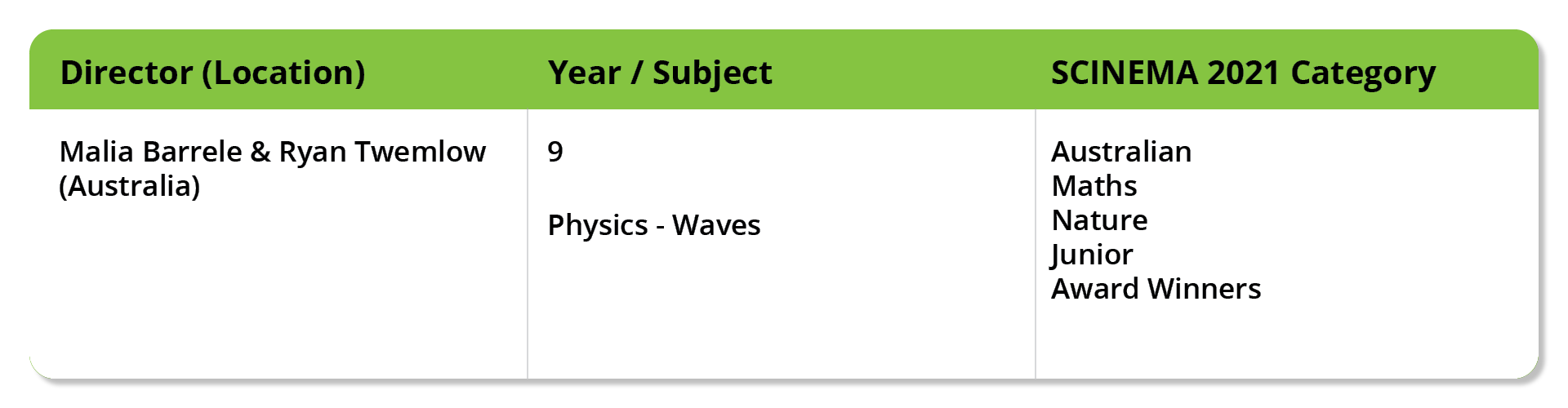 This film was submitted to the SCINEMA 2021 International Science Film Festival and was selected to feature in our Australian, Maths, Nature, Junior and School categories. It also achieved the SCINEMA Junior Award at the festival. The filmmaker has kindly allowed us to continue to show the film beyond the festival. Watch it below and download the accompanying educational resource for fun activities to use with your students.