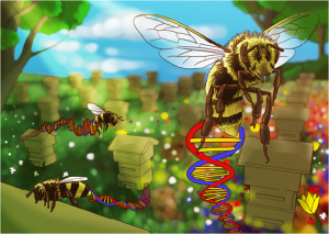 Other illustrations by Dr Walsh include honeybees with their own DNA strands dragging behind them, and shocked fish congregating around an underwater thermometer.