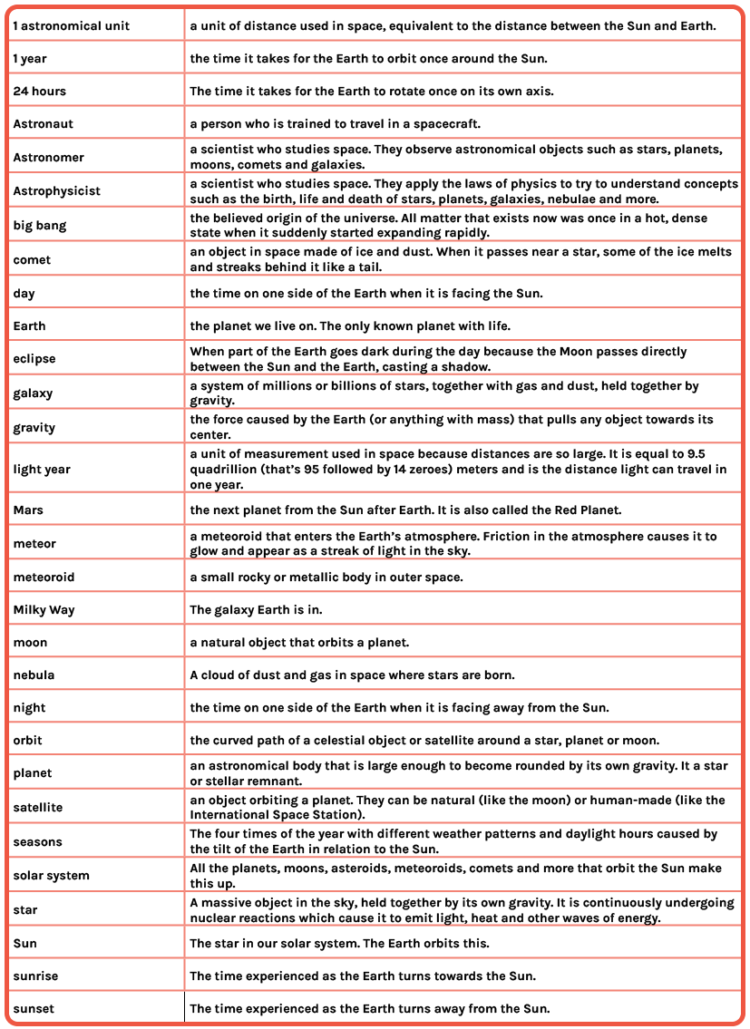 Space is a vast space to explore so get familiar with the key terms involved.