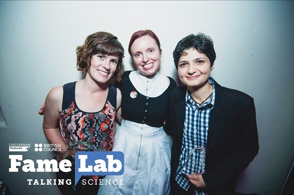 FameLab 2016 finalists (L-R) – Lucy Weaver, Erinn Fagan-Jeffries and Noushin Nasiri. Credit: OK Media Group