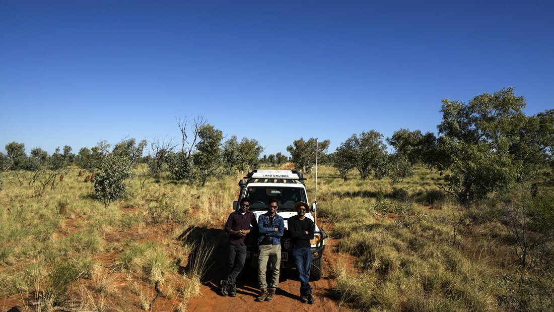From Alice Springs, you drive 500 kilometres north to Tennant Creek, located almost right in the centre of the Northern Territory. There you’ll be collected by Sam, Joel and Rajesh in a dust-covered four-wheel drive.