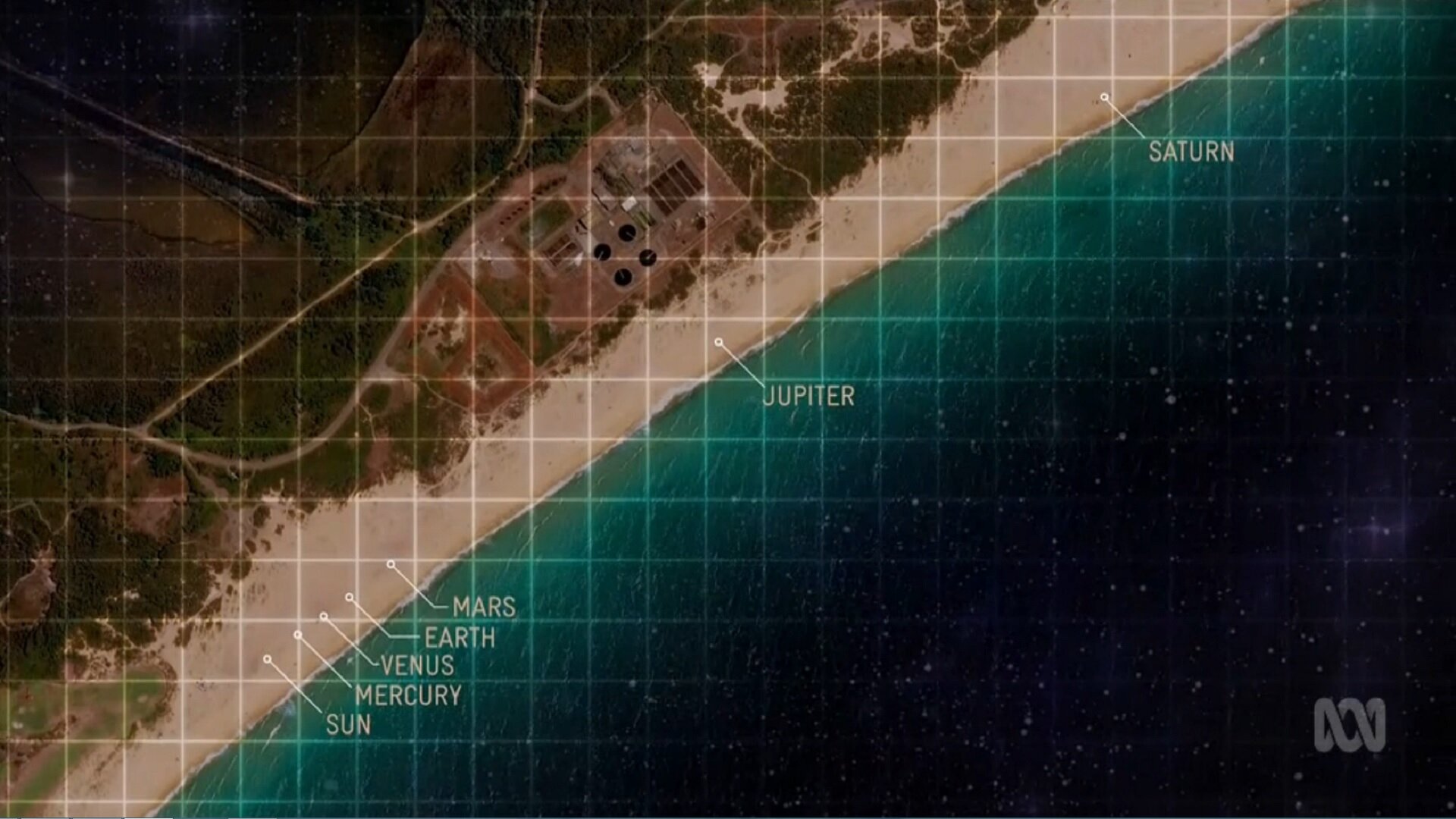 But by the time she needed to get to Jupiter she was in her ute driving along the beach, and by the time she got to Saturn she was 1.5 km away from her starting spot.