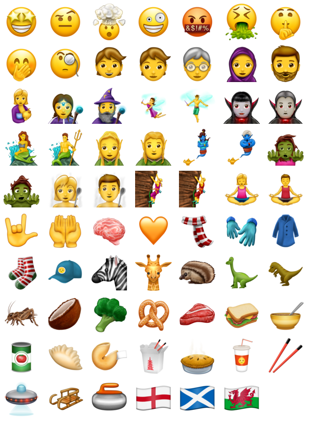 And while we’re on the vaguely zoology theme, a zebra, giraffe, hedgehog, and grasshopper have been added. And for the sci-fi fans, there’s a flying saucer emoji!