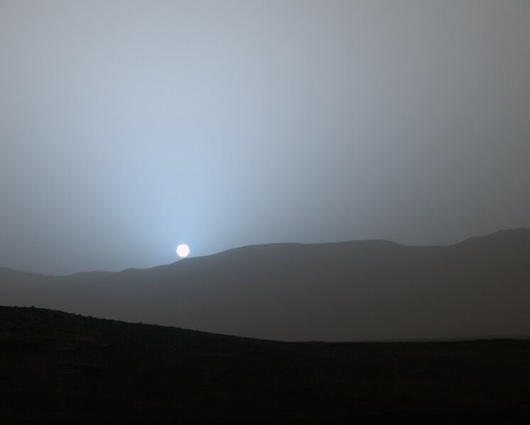 Curiosity watches the Martian sunset from Gale Crater. This was the first sunset observed in colour by Curiosity. Credit: NASA/JPL-Caltech/MSSS/Texas A&M Univ.